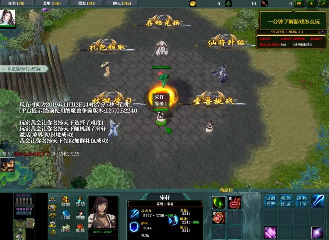 有了一两层的套装后,可以F4回到自己的专属门派。挑战神符进阶来提升我们开局就有的两个神符(需要吃下去)。