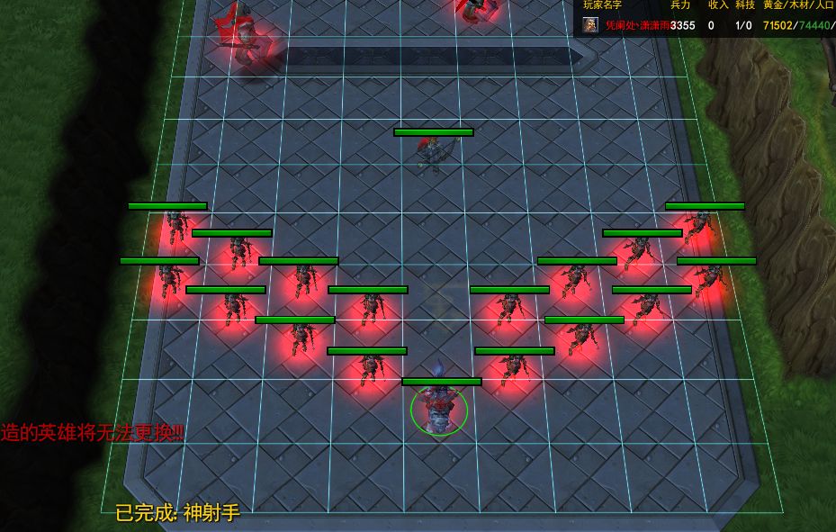 这里特别说明一下,过了10波之后必须有起码一家牺牲,一直上科技来提供木量,并且开漏(通过移位或者卖兵来让每一波都漏怪)来拖时间,增加木量,否则会导致木量不够无法打死对面。