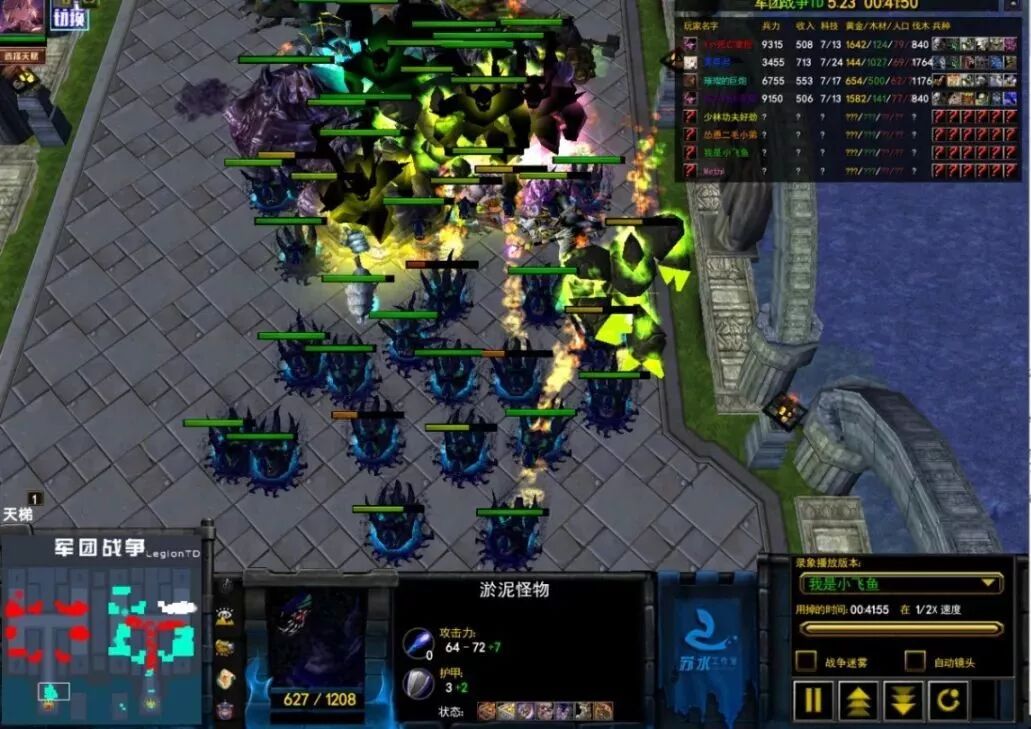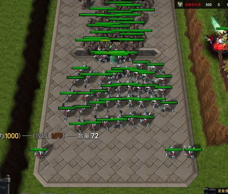 130个怪之后,92个怪的时候怪直接走上去,聚集去攻击你后面的蓝鸟直接吧你的兵给围了上去。