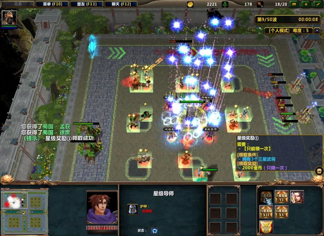 留下蜀国9人羁绊后我们开始建造“魏国9人组”,这里需要注意的是魏国武将要升3星,直到全场武将三星总数到达“15人”即可,否则后续无法抽取神将。