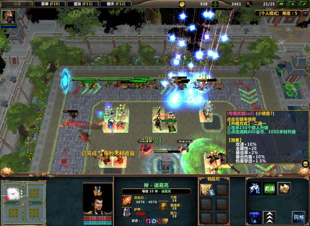 接着就是一直提升神将等级,神将专属不要花费金币、木材去提升,让他慢慢杀怪提升即可。