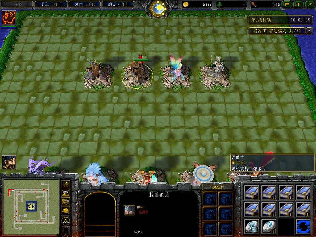 在技能商店中,我们可以购买万能卡,使用后就会获得随机防御塔。