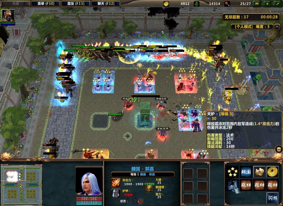 由于该套阵容输出总量固定,基本上到无尽45波左右就会发现只能控怪杀不死怪,但该套阵容的特点在于“稳定”,全程无需抽取第二个神将。