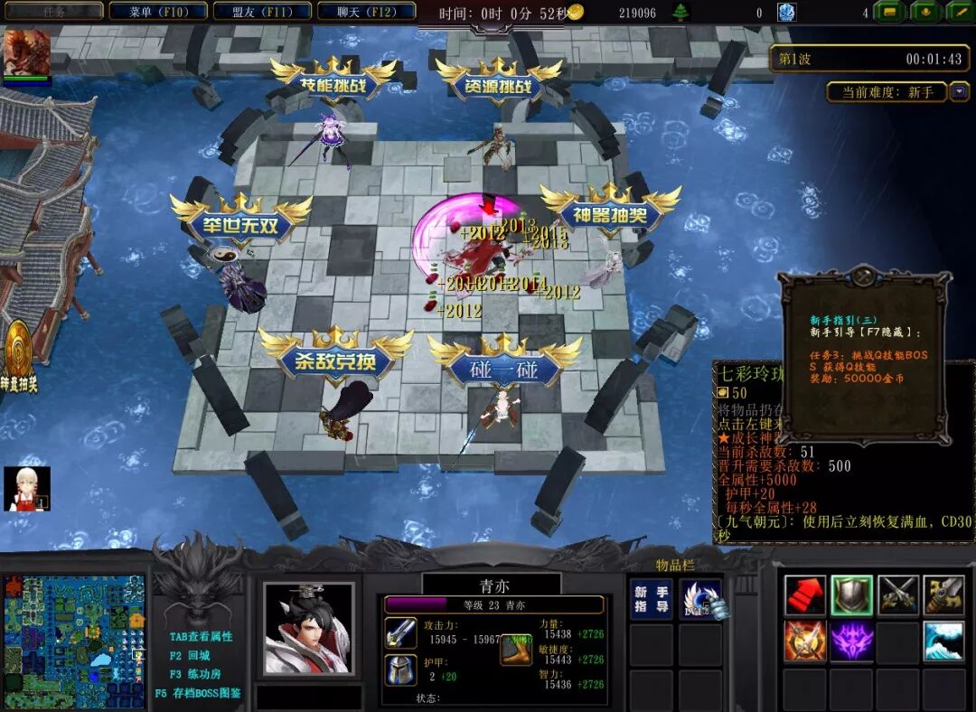 并且按照任务指引把新手任务给做啦。解锁一些属性跟攻击特效,以及获得一把杀敌成长装备。