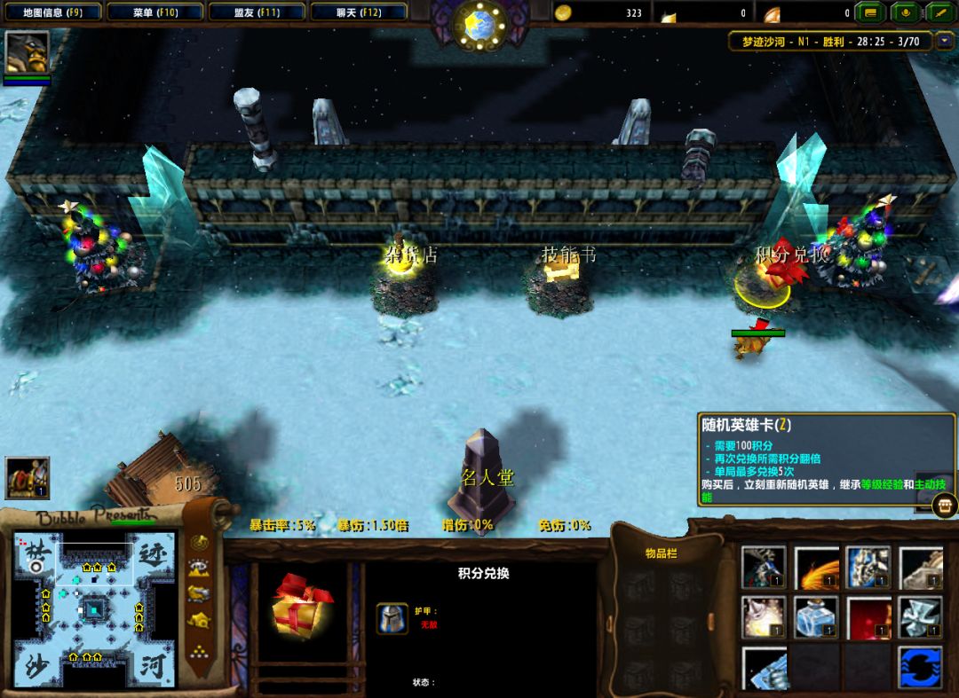 除了装备方面的优化,积分兑换中也新增了一件新物品——随机英雄卡,玩家们可以在游戏过程中的任意时刻兑换它,重新随机我们的英雄。不过虽然随机的英雄会继承等级经验和主动技能,但是不会继承被动技能,所以兑换之前务必考虑清楚。