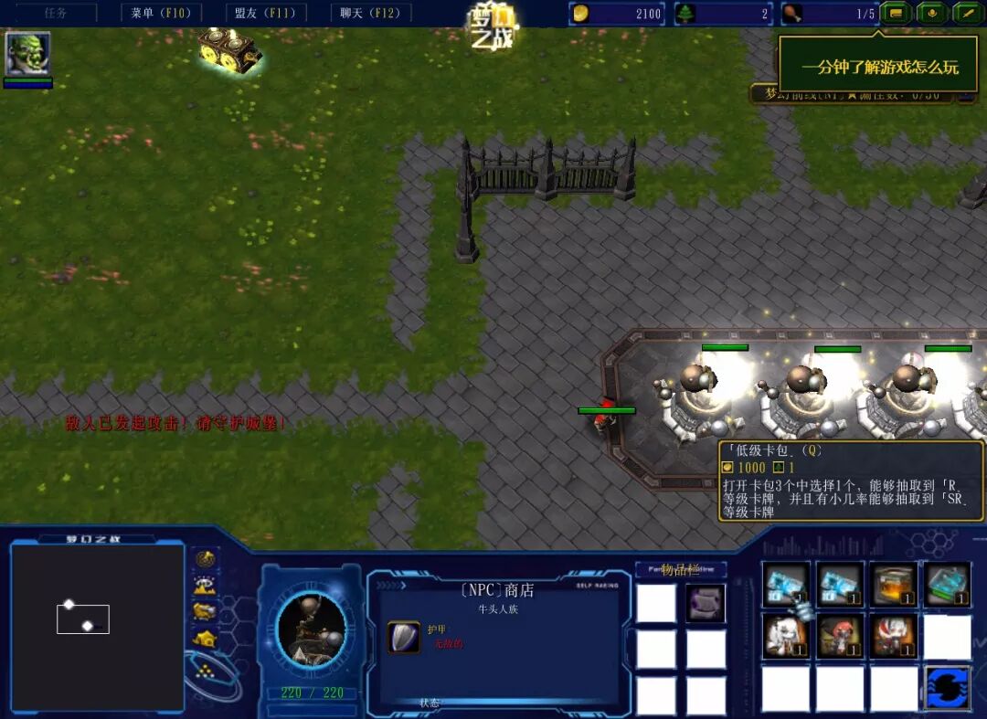 接着就赶紧到地图中间的左侧第一个商店中购买一个低级卡包,这是我们英雄的主要来源。