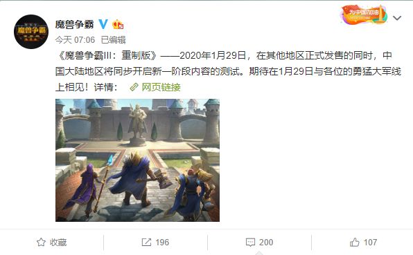 今天早上来自“魔兽争霸”官方微博的一则消息,瞬间引爆了小鸡朋友圈讨论,我们期待已久的《魔兽争霸3重置版》终于不负玩家众望,成功“跳票”!