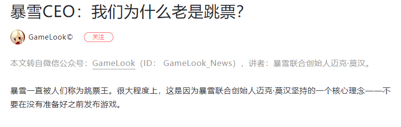 就连暴雪CEO也曾自嘲过自家的“跳票传统”,背负一切骂名只为能在游戏上架时为玩家呈现最完美的状态。