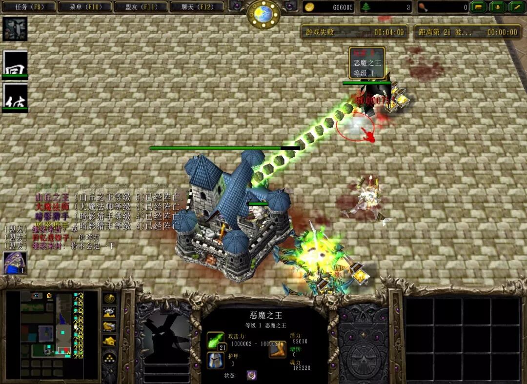难度1的游戏会在20波之后出现终极BOSS恶魔之王,我们必须在5分钟内击杀它。但是实际情况确是,如果我们配合的不好,没有把BOSS完美控制好,那就会和小鸡一样,瞬间被BOSS击杀一片并秒杀了基地...