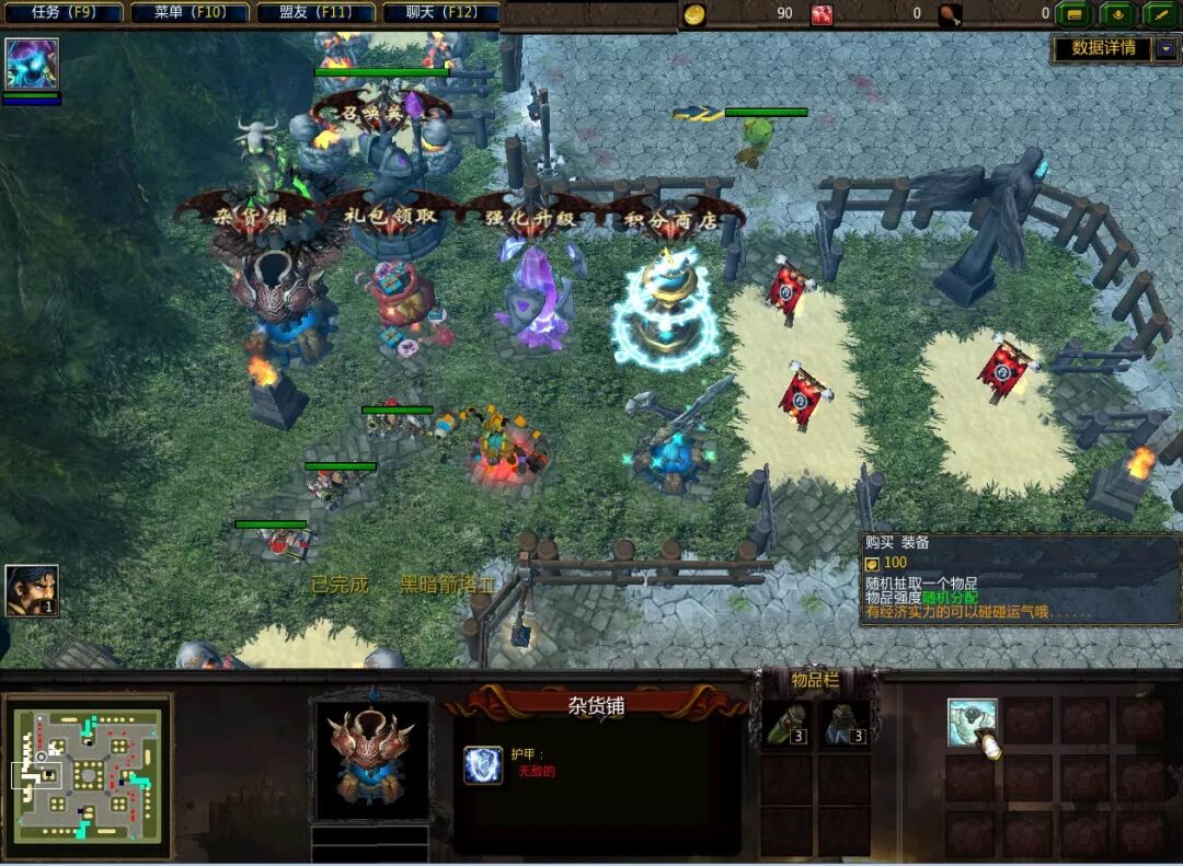 小鸡没有看到过装备合成的商店跟公式,因此我们如果有多余的装备,除了英雄穿戴外,我们的防御塔(有两个装备格子)也可以穿戴的呀。