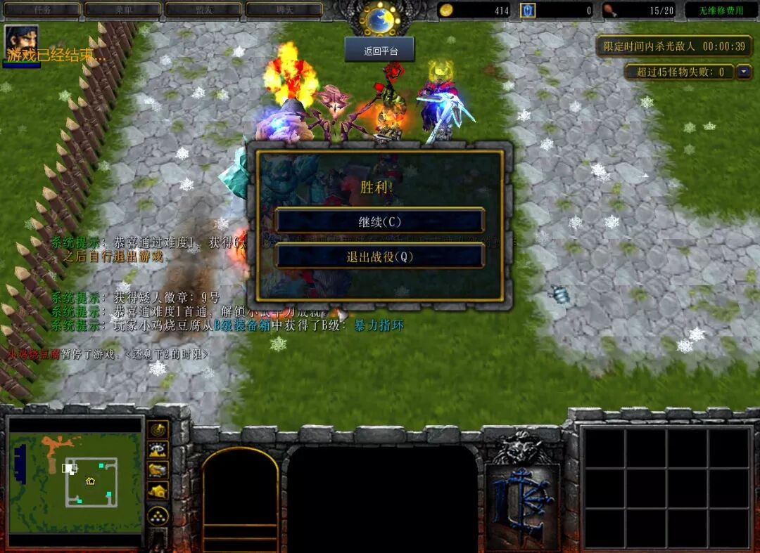 最后,只要玩家们在限定时间内,将地图上的所有小怪以及进攻BOSS全部击杀就可以获得游戏的胜利了,而那些没有来得及击杀的挑战BOSS是不会影响我们取得胜利的。