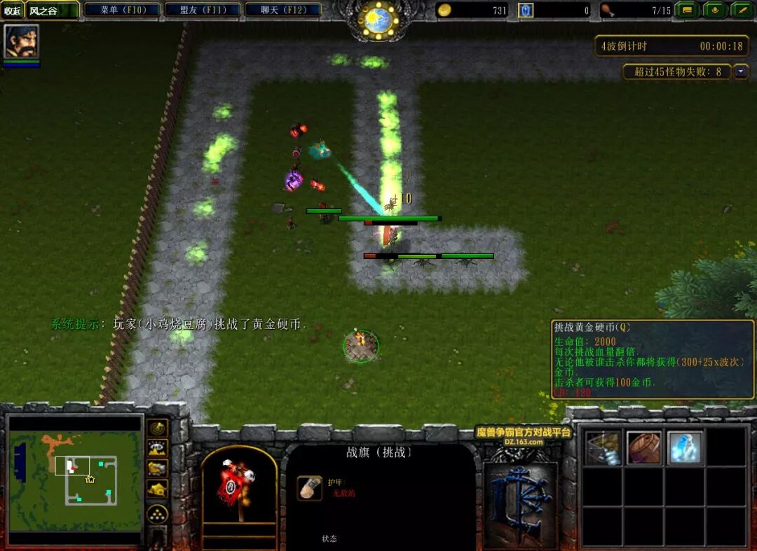 所有玩家出怪口的下方都有一个战旗(挑战),在其中可以挑战三种BOSS,分别产出金币、B级装备宝箱和潘多拉魔盒。