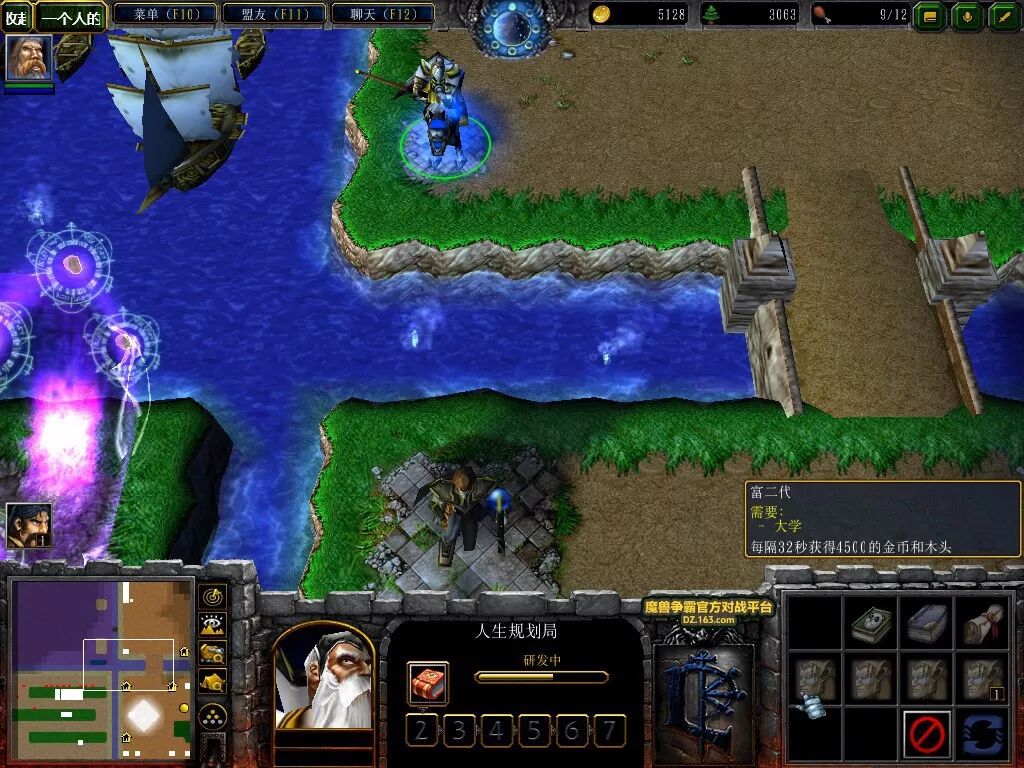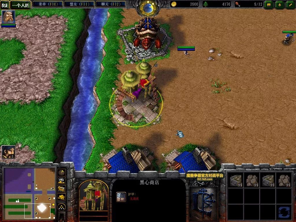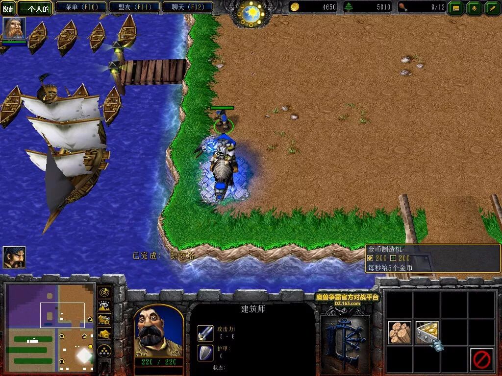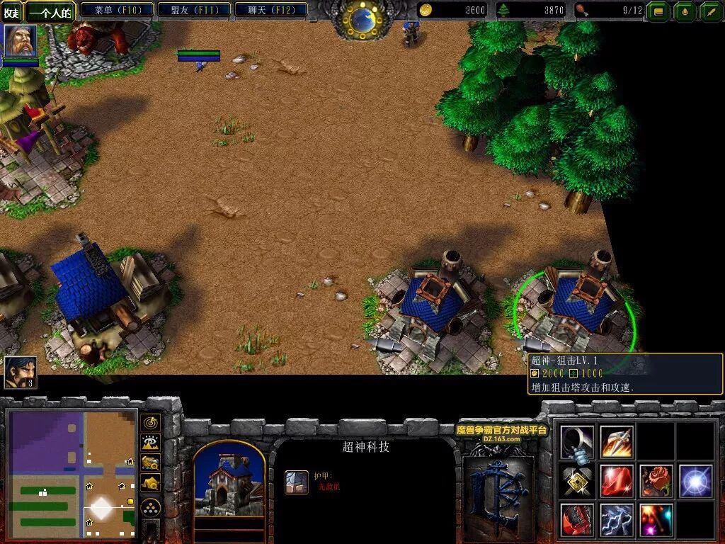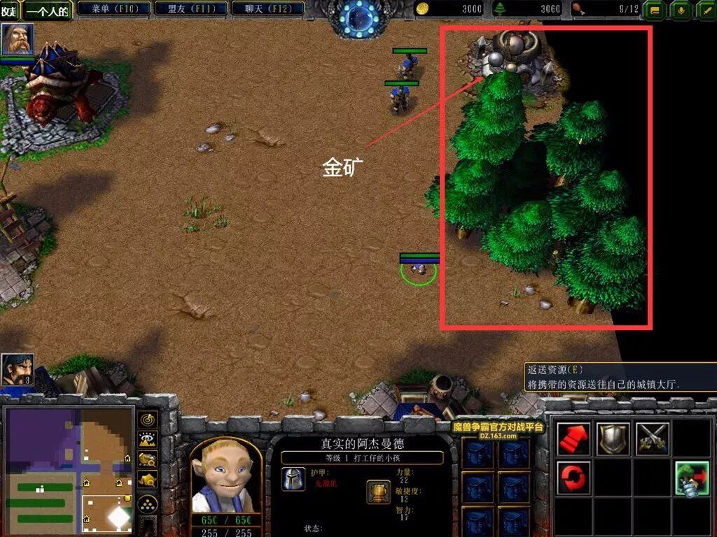 F1选择真实的阿德曼德才是我们的主角英雄,英雄单位和两个农民单位都是可以采集资源的,树林上方的是金矿,一开始小鸡还真的没有发现-。-