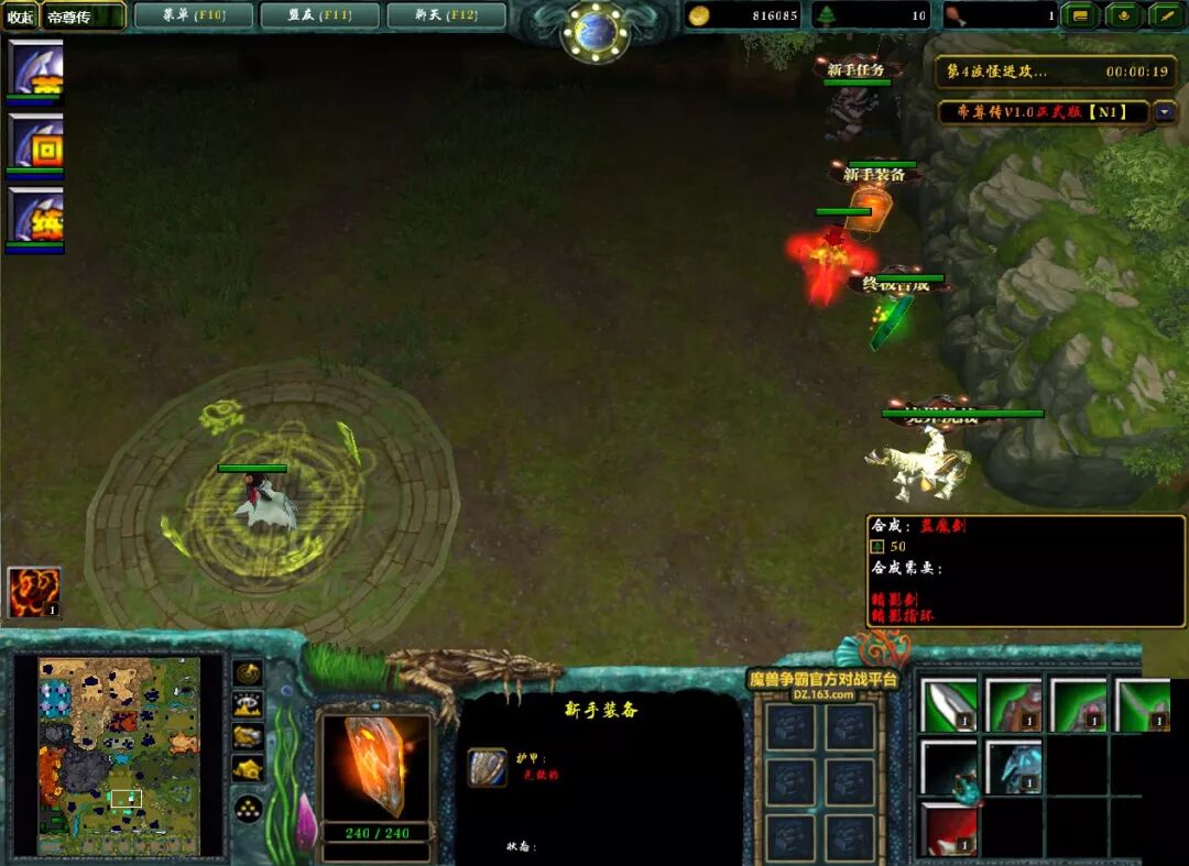 我们的新手四件套在升级到暗影等级后,就需要回到新手装备处进行合成了,四件套就变为了两件套,并且等两件套升满后还可以合成为最终神器噬神诛仙剑。