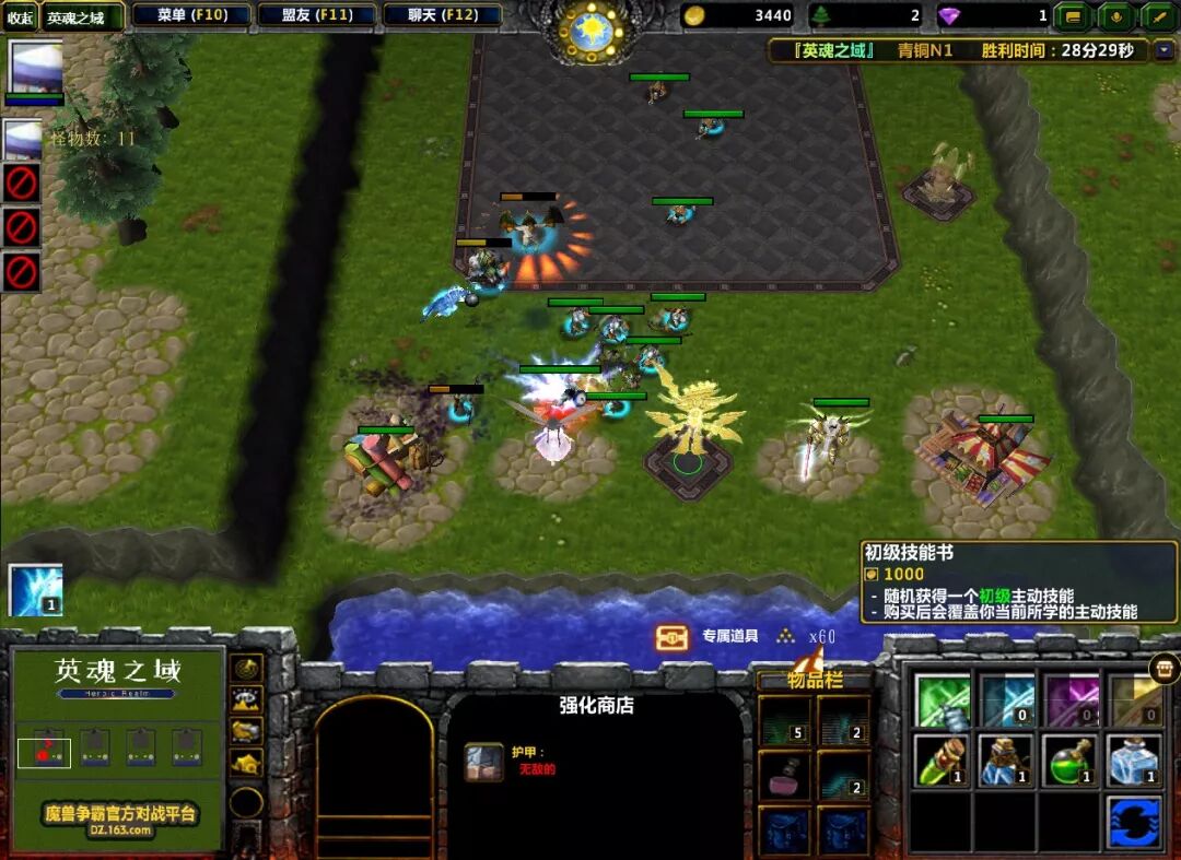 我们的英魂除了天赋技能,还可以学习一个主动技能以及一个特殊技能,其中主动技能分为初级、中级、高级和超级四个等级,大部分技能是伤害与属性挂钩的AOE技能,可以帮助我们快速清兵。而这些技能书可以通过击杀敌方单位获得,也可以在强化商店中购买。