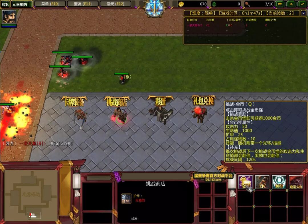 挑战商店中有四大挑战,分别是金币挑战、工匠挑战、神符挑战与建造大师挑战,挑战成功会给予我们相应的奖励。不过要注意是,这张地图的防御塔是可以被攻击的,而挑战怪的属性会成倍增长,因此挑战的时候小心被打的全军覆没。