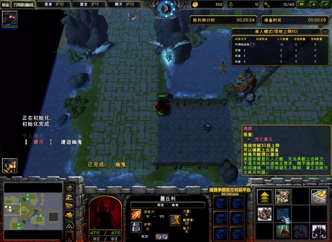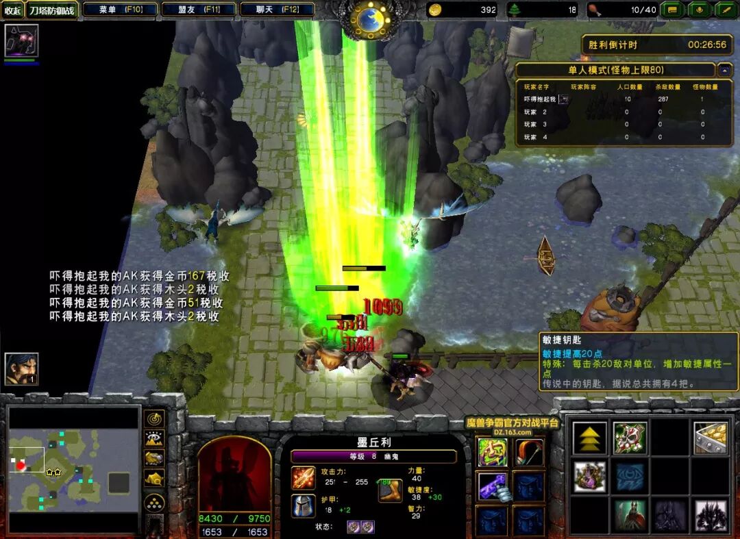 在每个玩家出怪口附近也有两个NPC,一个是显示当前拥有的奥义列表,每个奥义会占据玩家5个人口上限,英雄占据10个人口上限。