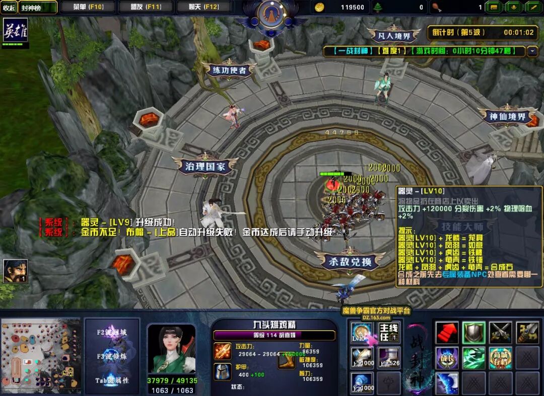 器灵是我们的关键道具,杀敌数累积满后就可以自动升级,当然前提是我们的金币足够,不然我们就只能手动点击升级了。