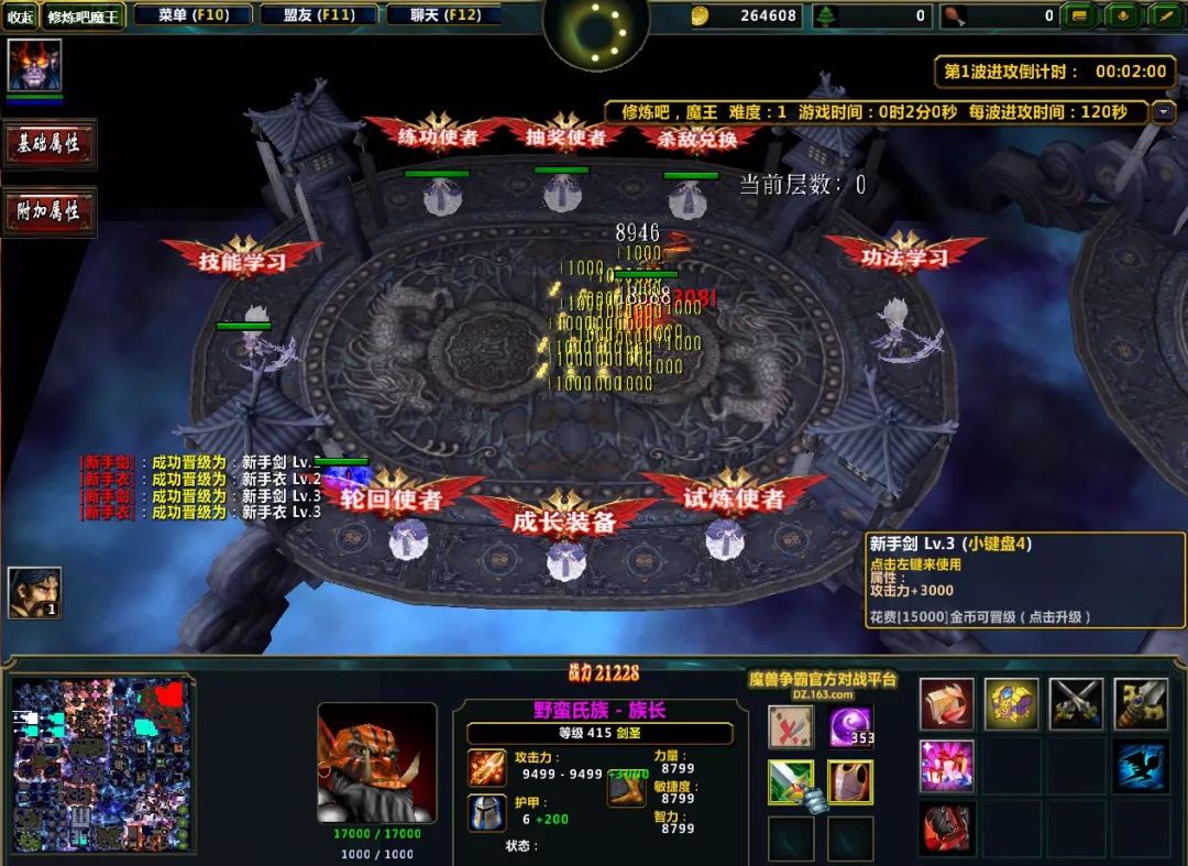 说到提升方式,那开始得到的新手装备与魔珠也不能忘记啊。新手武器可以点击升级,升级到5级后就可以点击进入BOSS战升阶了。