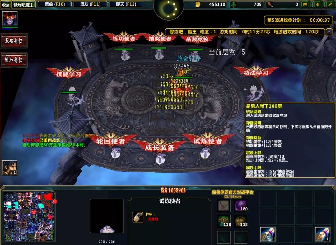 等外面的基本副本完成的差不多之后,我们可以回到练功房准备试炼挑战了。试炼挑战就是传说中的是男人就下100层,话说小鸡下个1层就很艰辛了,100层是不可能完成了。