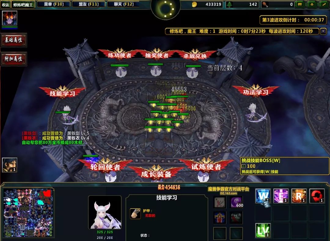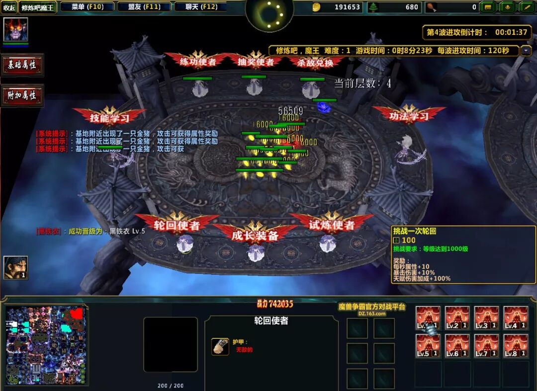基地右下方的传送使者处有转职副本、团队副本等有趣的副本,不过由于难度限制没法进行。不过就算可以进行,时间上也不允许,我们只要击杀了20波时前来的终极BOSS就可以顺利通关了。
