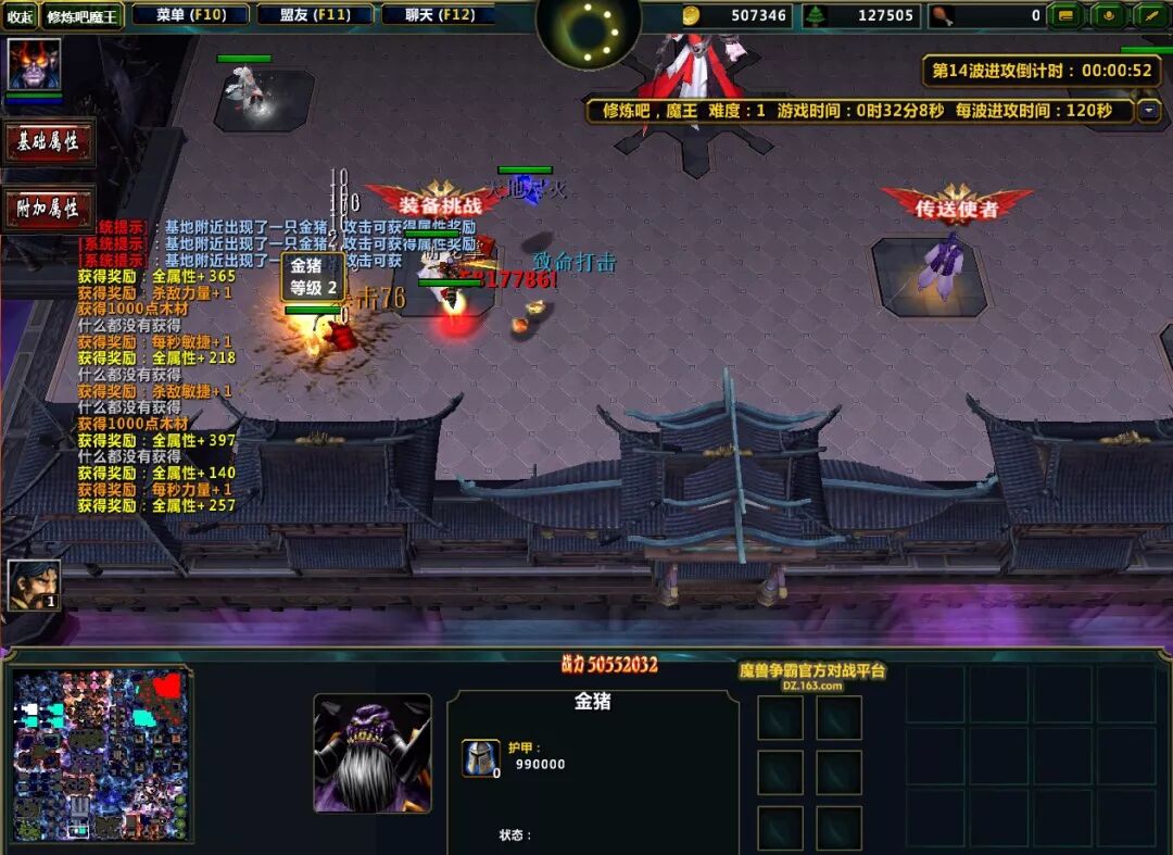 游戏过程中还会有各种随机事件,如被殴打就会给奖励的金猪,击杀可掉落扭蛋卷的藏宝小贼,以及从左上角传送门中不时窜出来的塔利班武装份子,我们一定要随时注意系统提示,别没死在勇者手上,最后挂在了自爆狂魔手上。