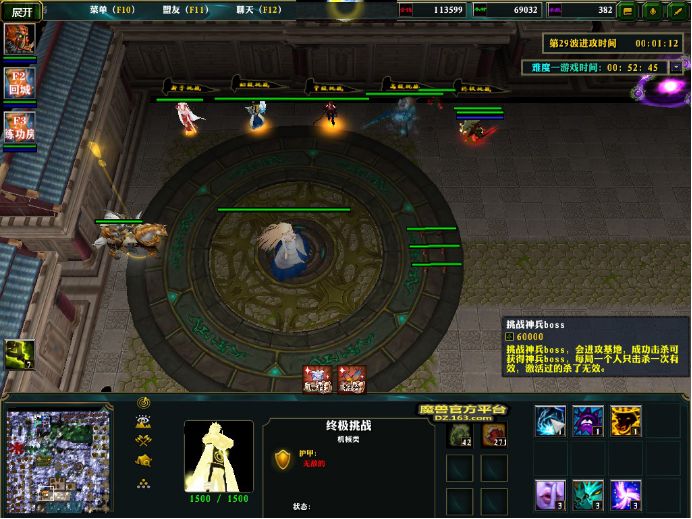 基地最后面这个终极挑战里好像有点什么不对劲,下面的魔风曲三个字符小鸡一个都打不了,提示杀敌数不够(这个时候已经完成所有挑战了),然后点了一下神兵BOSS,没有仔细看下面的会进攻基地...