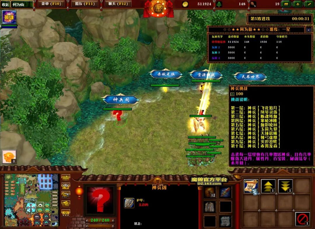 练功房内除了学习“天书”科技以外,还可以在“神兵阁”挑战获取各类神兵利器。
