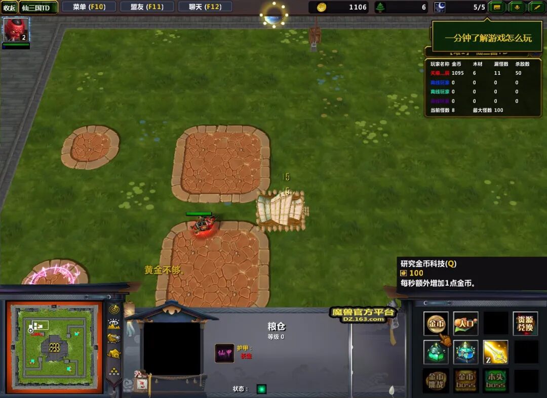 游戏的玩法看似简单,但实则有很大操作空间,我们前期开局优先建造英雄,如果能守住就去提升金币科技。