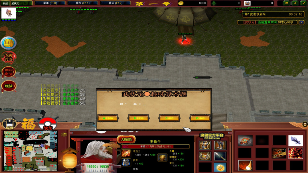 我们在进行游戏的时候还会有趣味算术题,比较简单,第一个答对的玩家获得到的全属性会多一些。