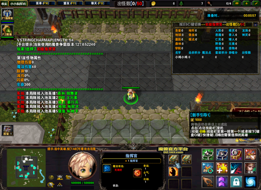 游戏开始后,我们需要尽快选择游戏模式和难度,否则系统会自动帮我们选择。一切都选择完毕后,我们会得到第一波怪物的属性及本局游戏的随机入池英雄信息。