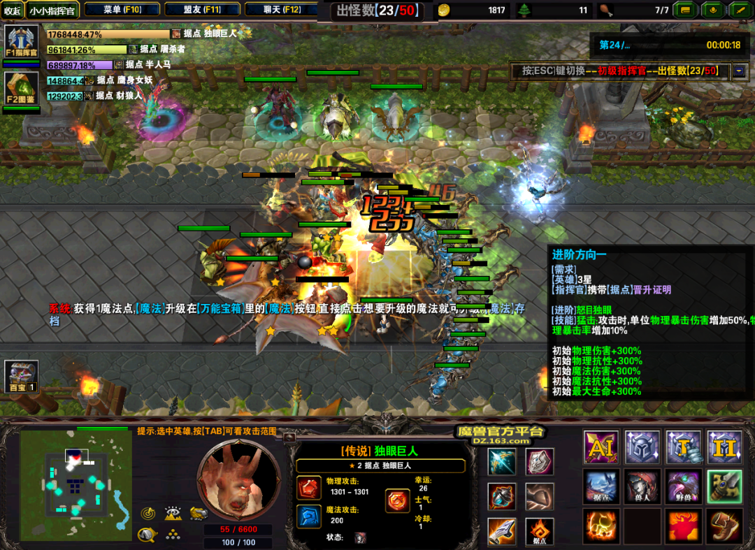 我们可以使用指挥官的Q/W/E技能进行初级、中级和高级召唤,召唤需要花费木头,自然越高级的召唤能召唤出的高品质英雄概率就越高了。