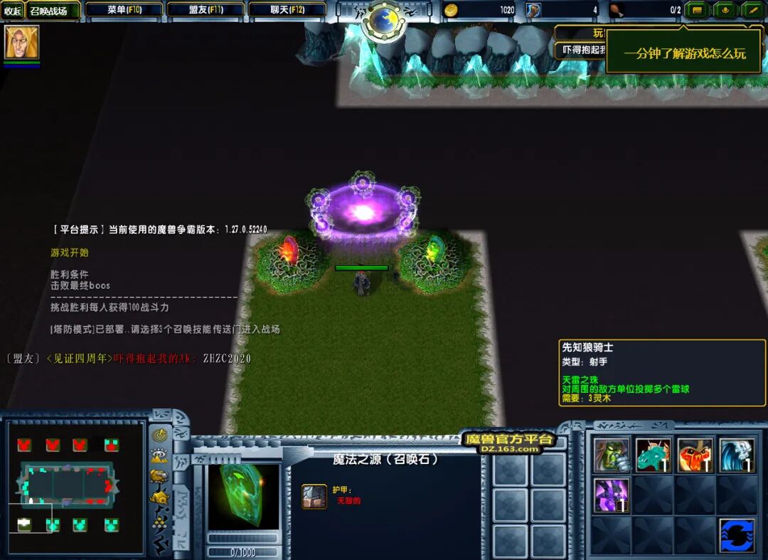 多人PVP模式下,推掉敌方基地即可取得胜利,总的来说是一张将手游卡牌的游戏模式移植进魔兽最为不错的一张对抗类RPG新图。