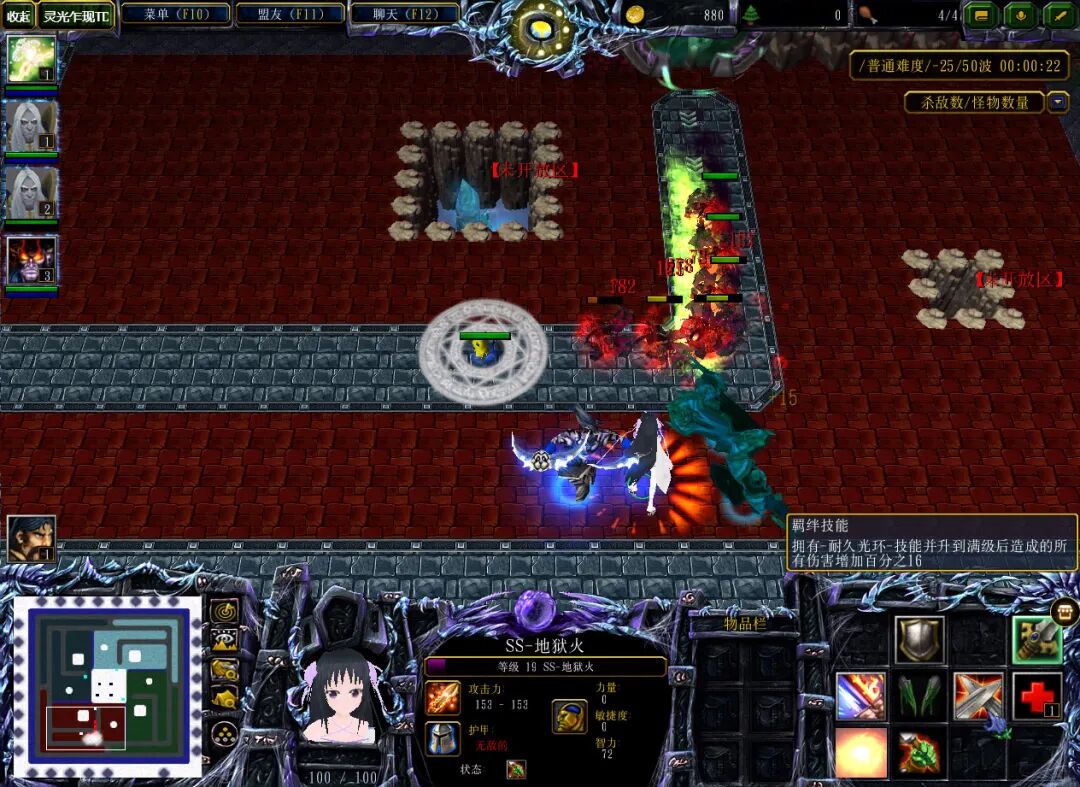 将随机到的SS卡建造在拐角处,并将火焰披风装备给英雄即可安稳度过前面几波怪物进攻。