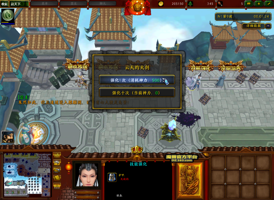 等我们的技能激活了之后,技能强化NPC就会发生变化。这个时候再点击他就可以弹出技能升级界面。升级技能所需的神力要在练功房中慢慢获取哦。