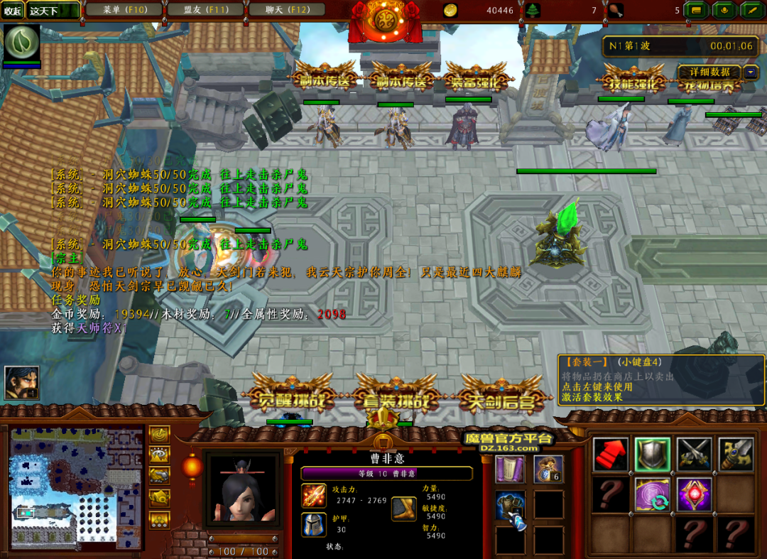 而等到我们属性足够后,就可以开始进行套装挑战了。每个套装副本里都有三个BOSS,分别击杀后获得的散件可以如同套装1一样合成并点击使用。