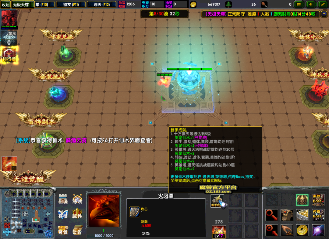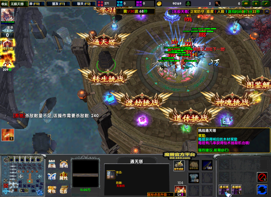 而仙术奖励的大头正在通天塔/英雄塔里,开启通天塔/英雄塔挑战后,我们就需要不断的提升层数了。