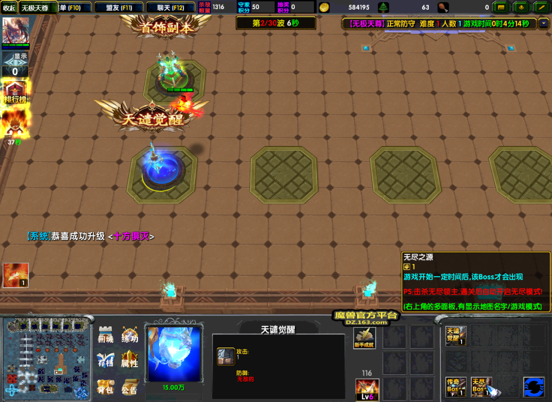而游戏过程中,如果我们觉得已经足够强了,就可以试着击杀无尽领主了,将其杀死后就可以自动开启无尽模式了。
