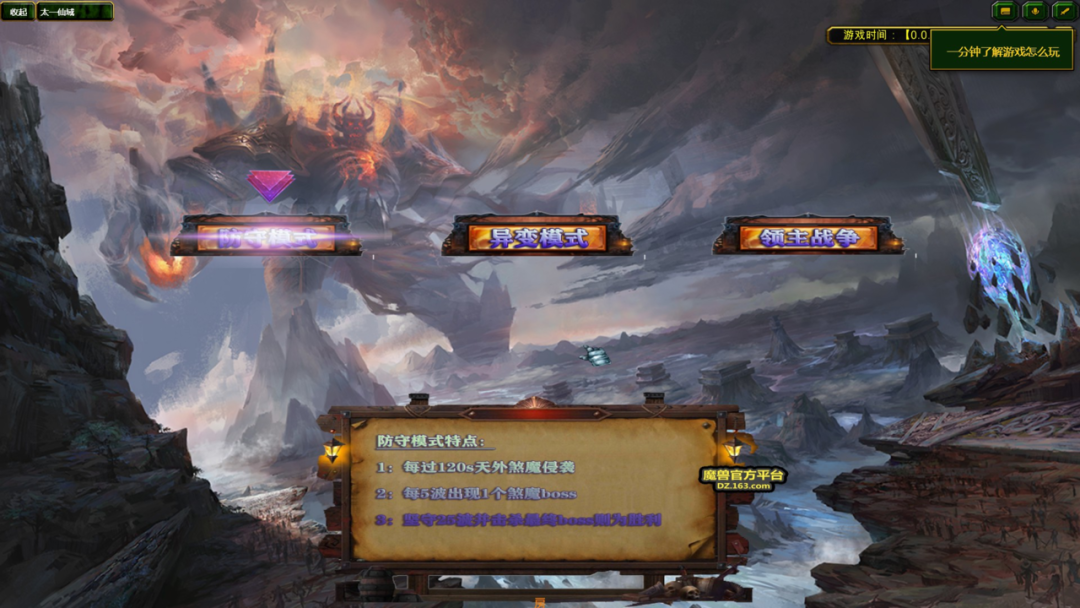 进入游戏前我们需要选择一下游戏模式,分别是正常的防守模式,异变模式(进攻怪概率变异)和领主战争(BOSS模式)。