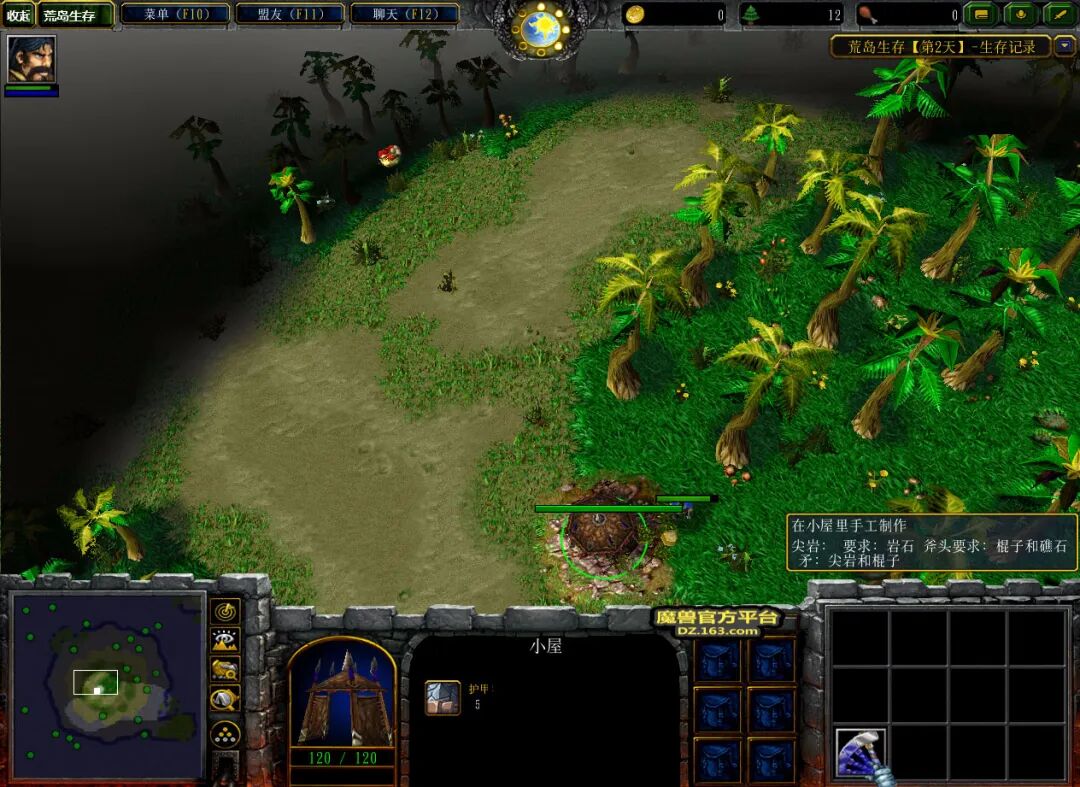 那么在《荒岛生存》这张新图里同样适用,我们游戏的目标就是靠前期伐木来建造各种建筑,等中期发育成型后击败强盗找到宝藏,最终逃离这座岛屿的游戏流程。