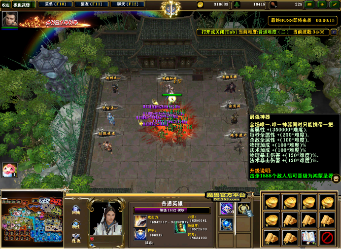 破损的神器可以通过杀敌不断升级,并且随着它的修复会依次的引来紫雷仙君、雷煞魔帝和鸿蒙圣主,都击杀后可以升级为鸿蒙圣器。