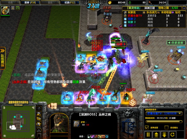第四个深渊BOSS丛林之祸的技能效果看起来不是很变态,仅仅是所有怪物都会获得回春效果,也就是回血能力大大增强。但是此BOSS有一个特点,就是场上刷出了带邪恶光环的小怪后,此BOSS的回血能力会极大地增加,基本可以说是不死的。因此击杀此BOSS前最好将小怪全部击杀了,或者暗暗祈祷不会刷新出带邪恶光环的小怪,不然就只能眼睁睁地看着它从我们眼前慢慢走过。