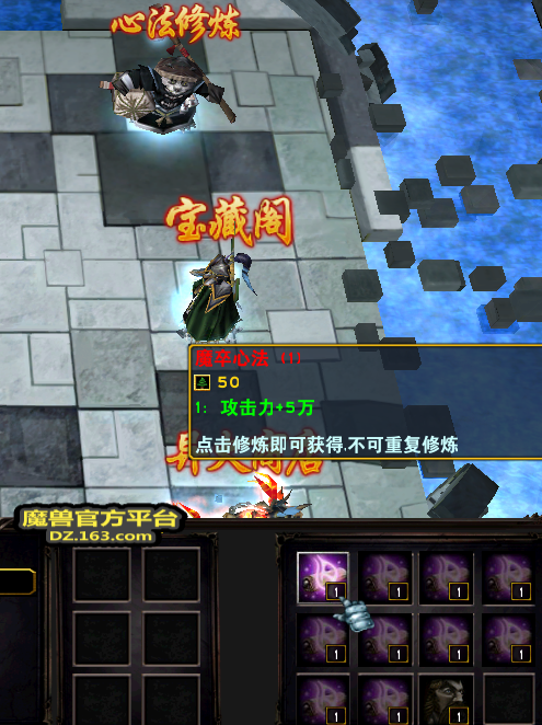 右边的心法修炼是我们最早能强化自己英雄的手段。不要犹豫,一个个点下去吧,每一页点完最后都会有一个心魔BOSS,击败后即可修炼下一层的心法。