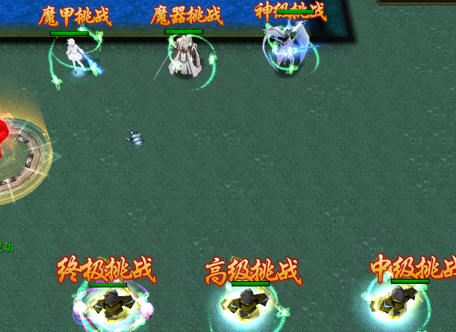 我们再来到基地区域。在左侧可以看到是挑战区域。上排的三位NPC从名字就能看出是高位挑战。前期不会接触到。所以我们主要看下下面的挑战NPC。