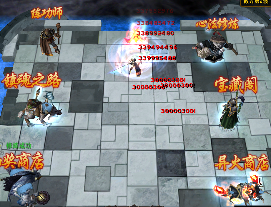 F3来到我们的练功区。NPC头上非常大的字体能让你一眼明白他的作用,十分贴心了。