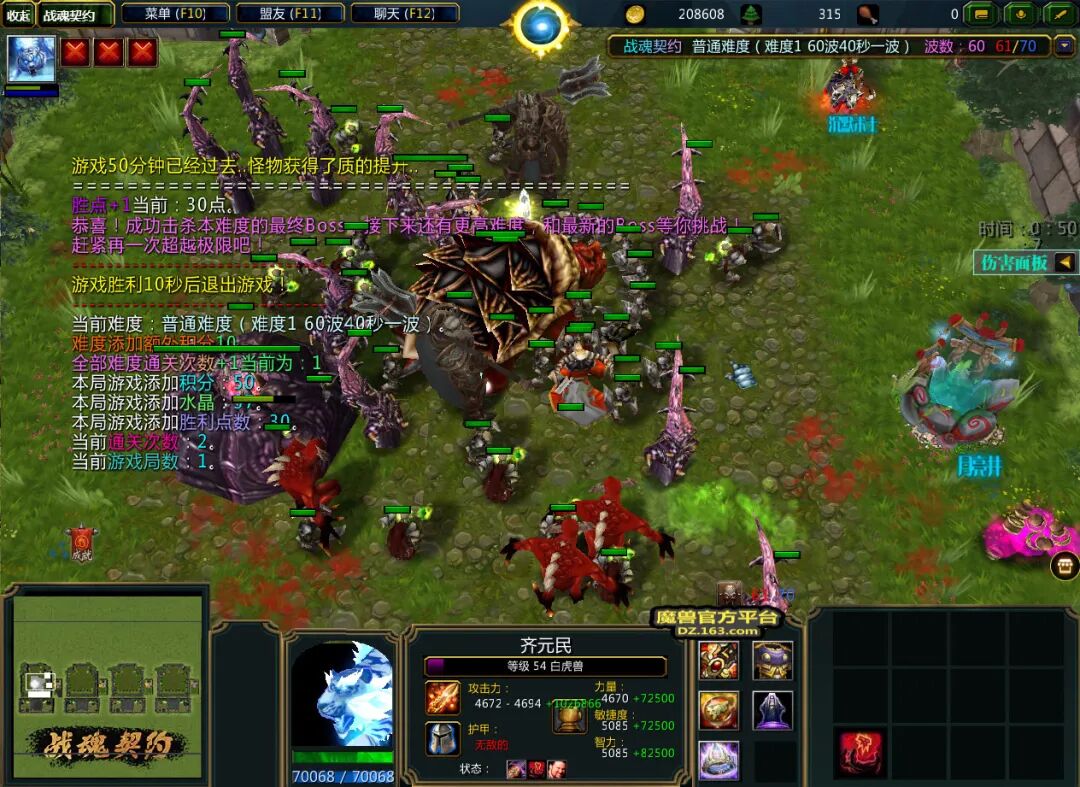 游戏难一只有60波进攻怪,由于失败机制和怪物上限有关,因此不用担心英雄阵亡从而着重在前期提高输出即可。