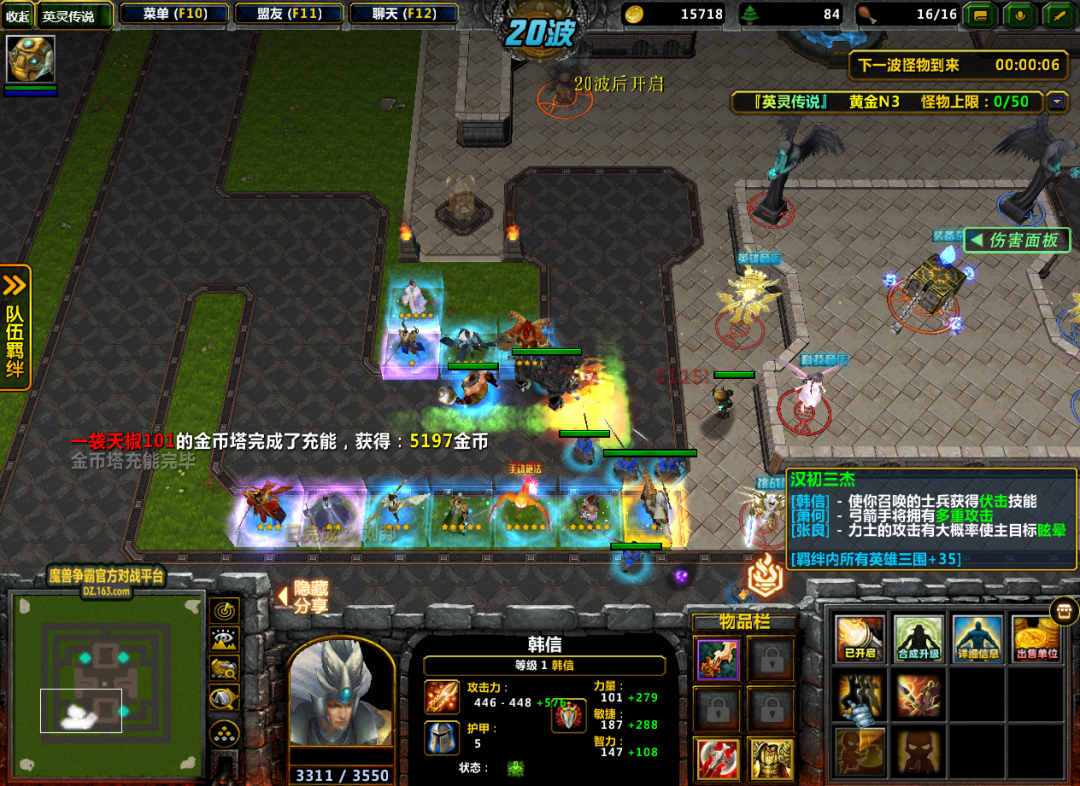 自打前两天《英灵传说》将曹操以及几件召唤装备大幅度加强后,以前孤军奋战的韩信身边又多了位强大的队友。小鸡这几天看到了很多4、5W攻击的典韦,留下来羡慕的口水。