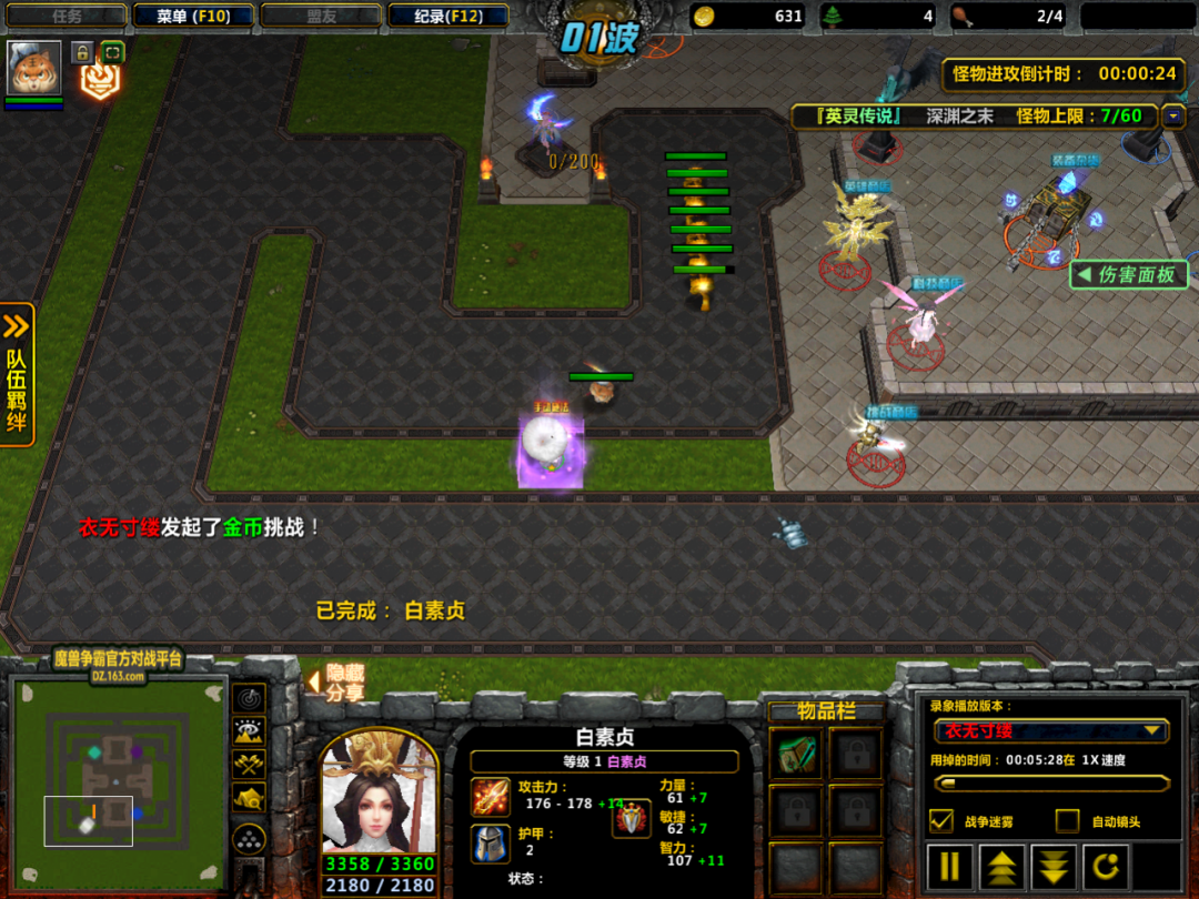这里我们抽到的是白素贞,放下后就可以直接开启金币挑战了。记得不管抽到的是哪个英雄,都把自动施法切换到手动施法,这样我们可以追着金币怪放技能了。