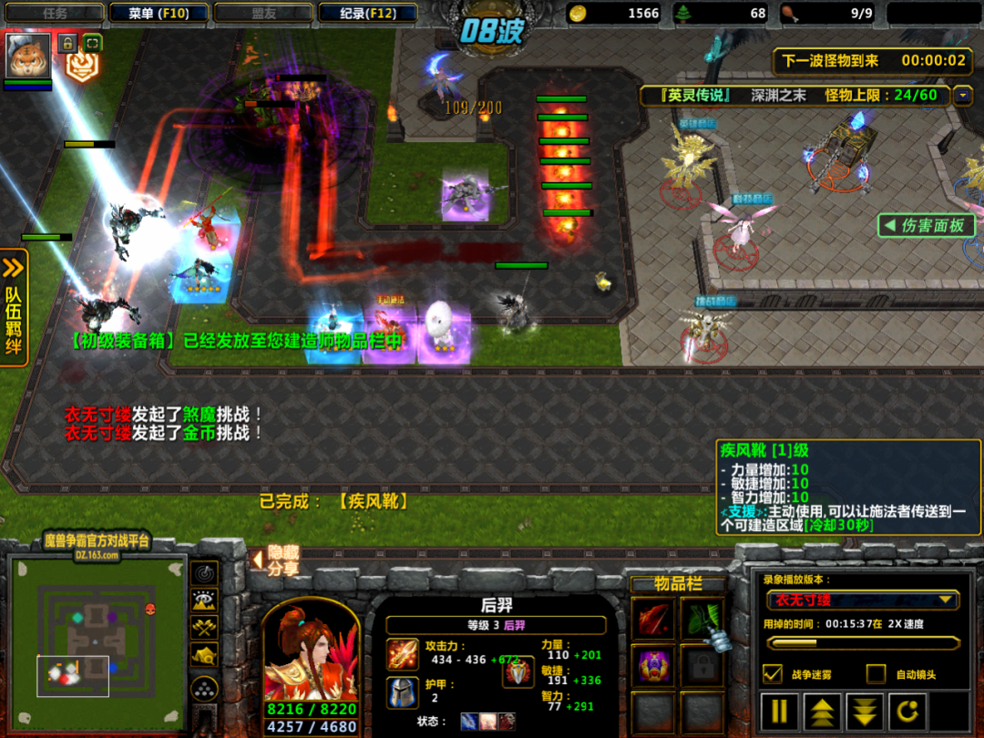 我们最好准备一双疾风靴,哪怕是一级的也好,然后让后羿带着去追杀BOSS吧。
