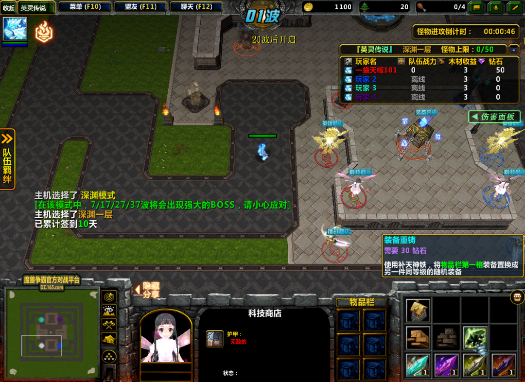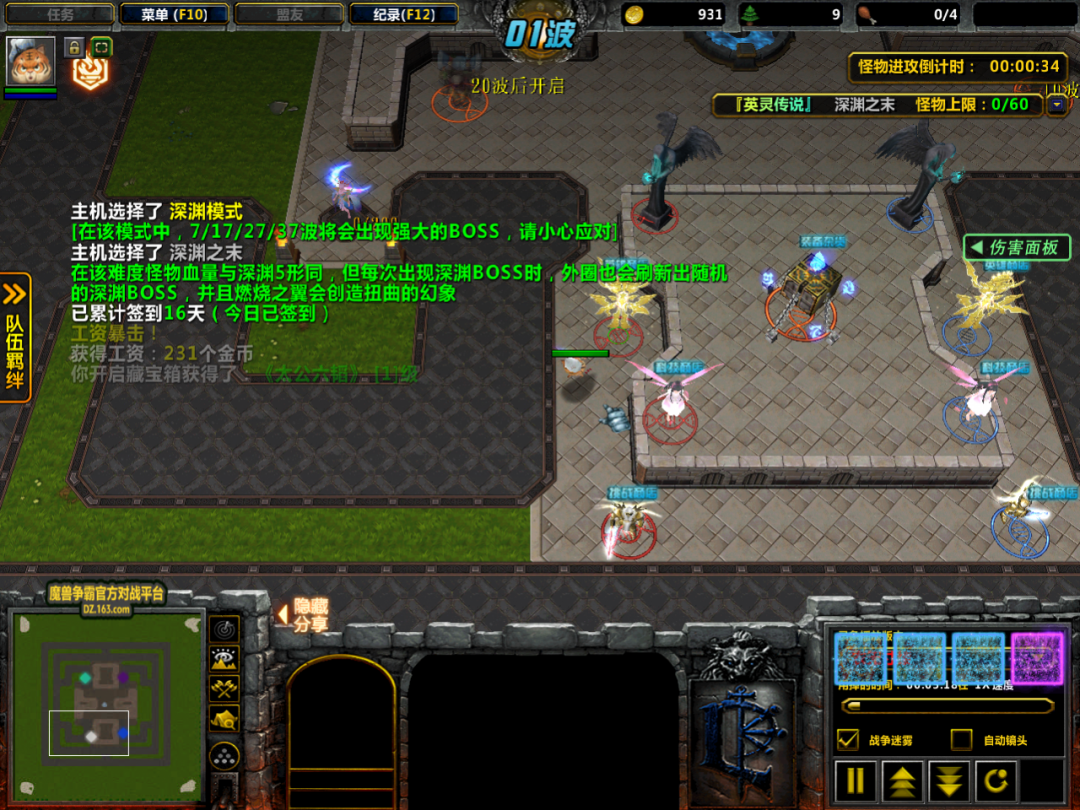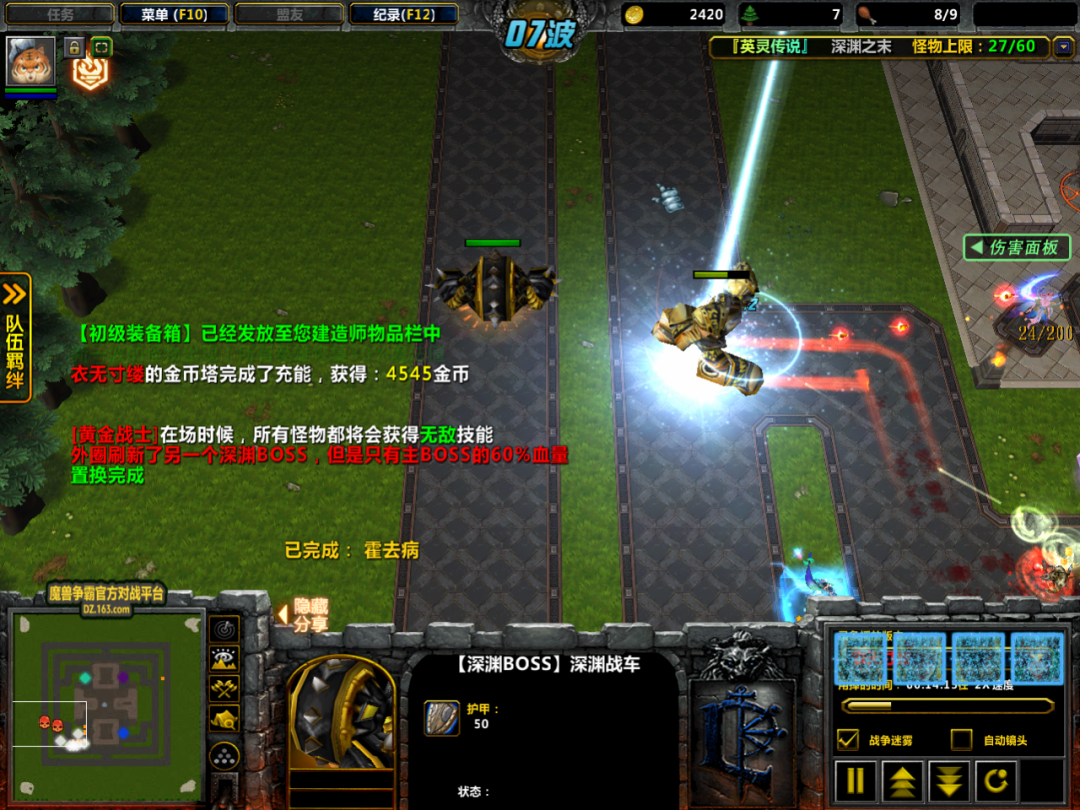 第七波的时候,内圈刷新出了随机的深渊BOSS黄金战士,而外圈也随着刷新出了另一个深渊BOSS深渊战车。